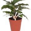 Ben je op zoek naar een kamerplant die niet alleen stijlvol is, maar ook de lucht zuivert? Dan is de Calathea een perfecte keuze! Deze bijzondere mini plant staat bekend om haar unieke bladtekeningen en fluweelachtige textuur. De bladeren hebben vaak contrasterende nerven en patronen die van elke Calathea een natuurlijke eyecatcher maken.